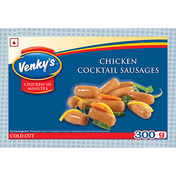 Thaw the packet in refrigerator at 5 degrees centigrade or less for 8 hours or thaw in a microwave. Shallow fry Venky’s Chicken Cocktail Sausages in a non stick pan with very little oil or put in a steamer for 3 to 4 minutes to achieves a minimum product temperature of 75 degrees centigrade. Serve warm