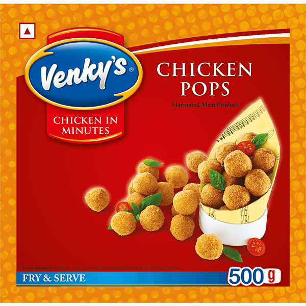 Heat sufficient oil in a pan to 180 degrees centigrade and gently drop Venky’s Frozen Chicken Pops into it. Deep fry for 2 to 3 minutes until Pops turns golden brown & achieves a minimum product temperature of 75 degrees centigrade. Serve hot with tomato ketchup